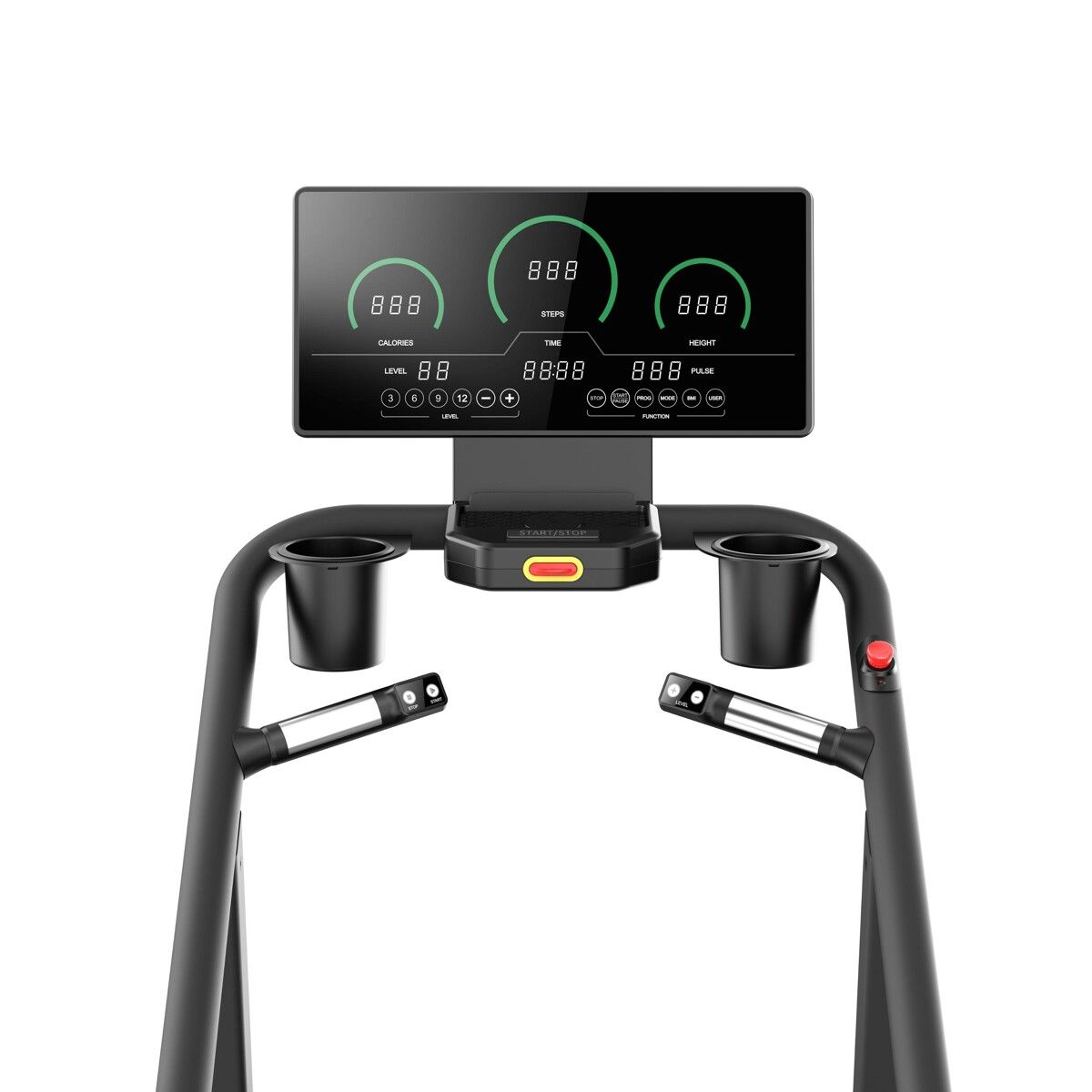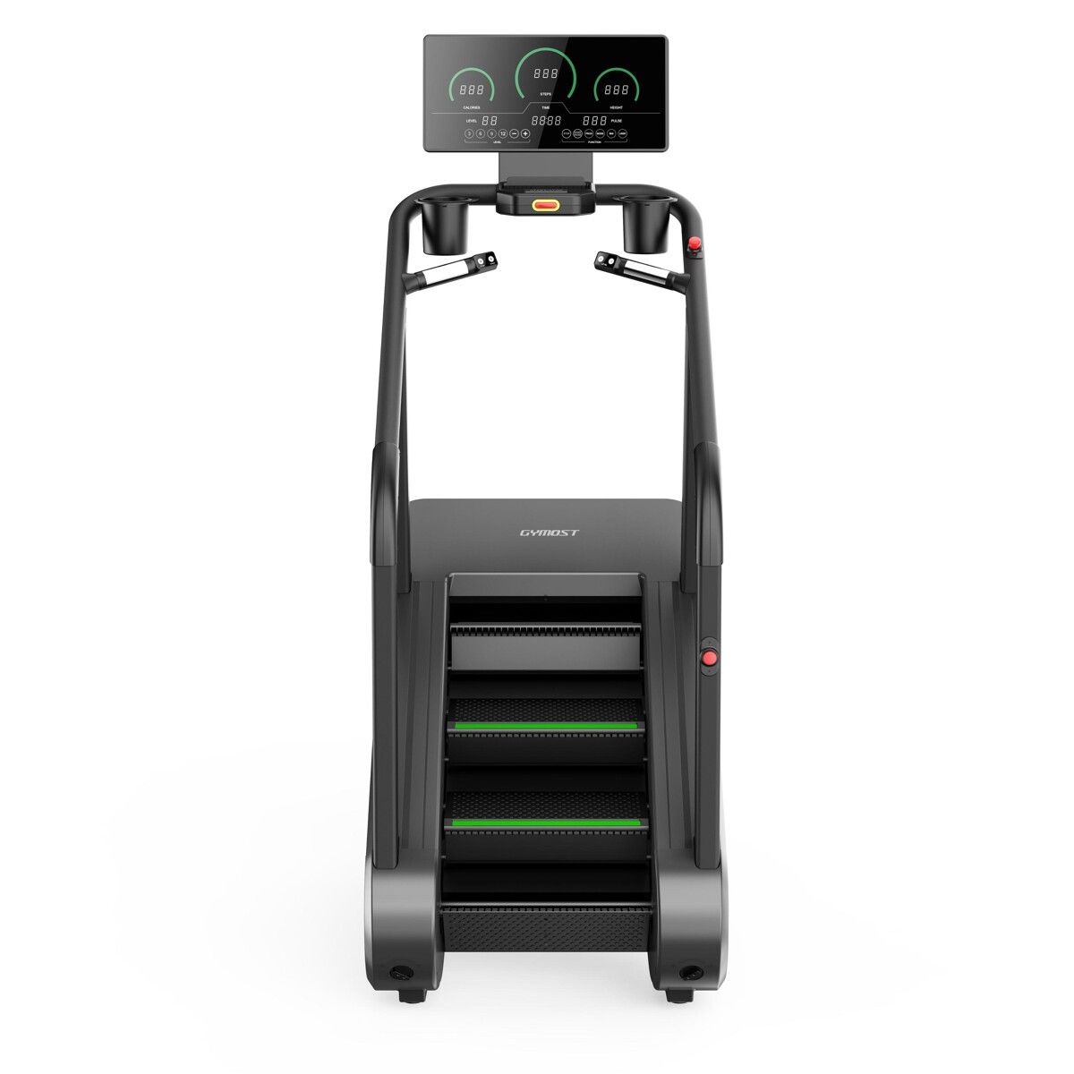 Le STAIR CLIMBER est un simulateur d'escalier (stair climber) commercial robuste, doté d'un freinage électromagnétique à induction de gravité et de 40 programmes d'entraînement (36 préréglés, 3 utilisateurs, 1 manuel). Il dispose d'un écran LED, d'une vitesse de 14 à 140 pas/min et de fonctionnalités de sécurité comme l'auto-stop.