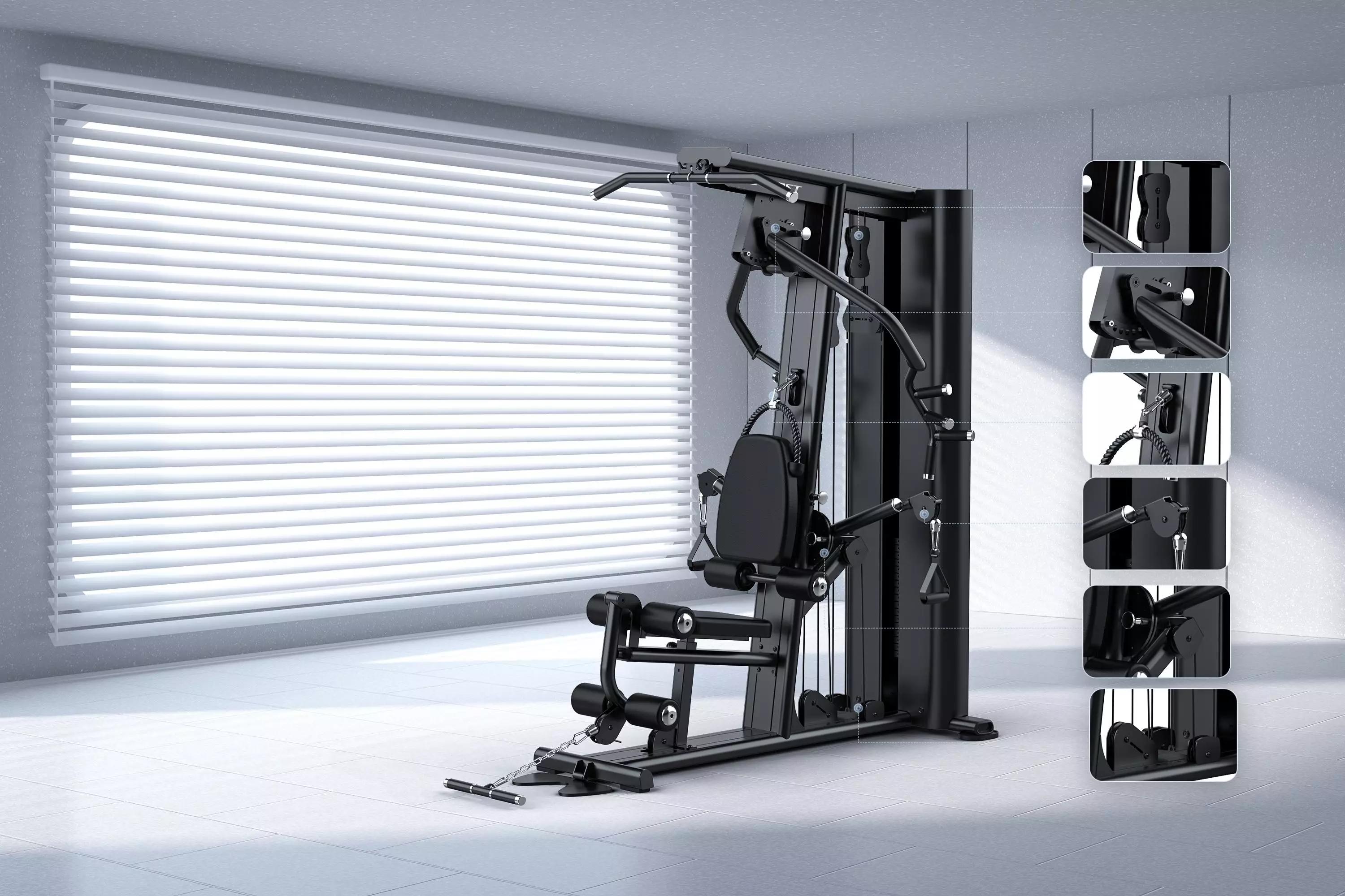 La Station GYMOST L131 est un multi-gym polyvalent conçu pour un entraînement complet (bras, épaules, dos, jambes, etc.), avec une structure robuste en acier, des câbles résistants (capacité 600 kg), et un poids de charge standard de 60 kg (extensible à 90 kg), adapté aux usages domestiques et commerciaux grâce à sa construction de qualité. Il inclut des modules pour le développé couché, les tirages, les exercices pour les jambes (quadriceps/ischios), et des poulies haute/basse. Caractéristiques principales