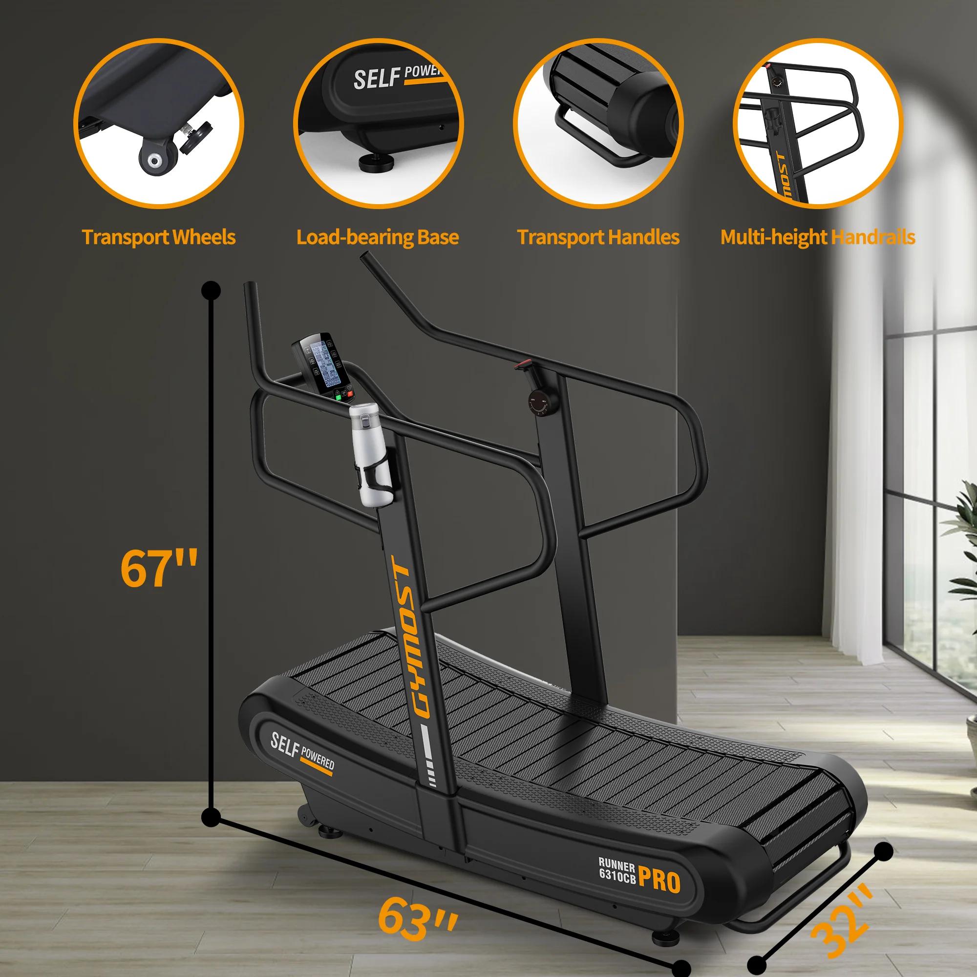 Le tapis de course GYMOST 6380CB est un modèle manuel incurvé (sans moteur) conçu pour le sprint et l'entraînement intensif, offrant une grande surface de course, des niveaux de résistance ajustables (1-45) et des fonctions comme le suivi de la fréquence cardiaque, le Watt et la compatibilité Bluetooth/APP via son écran LCD, idéal pour des séances de haute intensité.