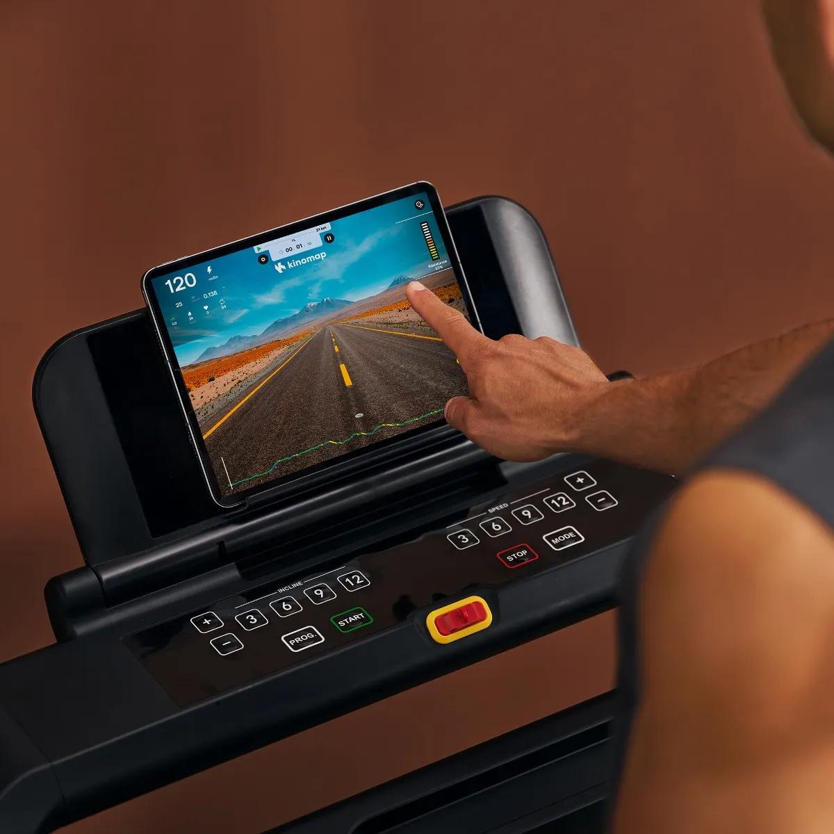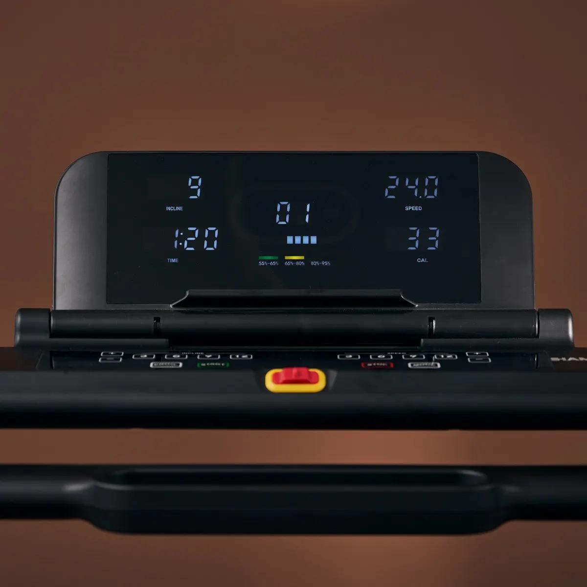 - Mesures affichées : Vitesse, distance, temps, calories, fréquence cardiaque.